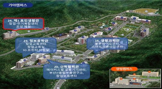'부산 창업가꿈' 3호점인 동의대점(부산진구)은 대학교 내 기숙사(효민생활관)를 리모델링해 창업시설로 탈바꿈한다.