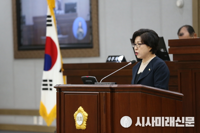 수원시의회 이혜련(자유한국당, 매교,매산,고등,화서1·2동) 의원이 21일 제346회 임시회 제2차 본회의에서 5분 자유발언을 통해 수원 고등동 주거환경 개선사업 A-1블럭 공동주택 사업의 주차장에 대한 문제점을 지적했다.