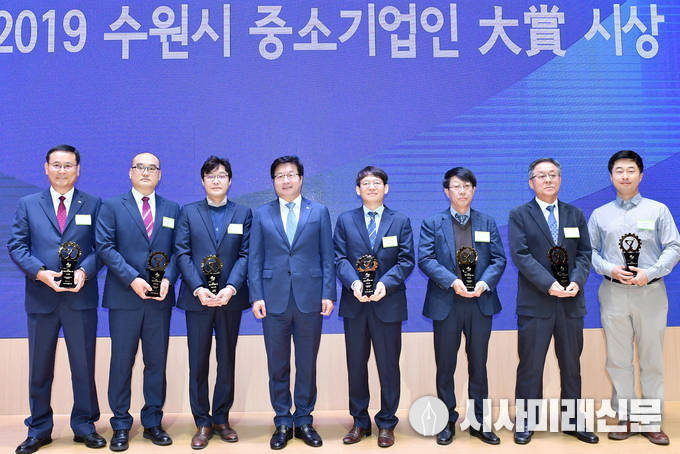 수원시는 5일 시청 대강당에서 ‘2019년 수원시 중소기업인 大賞’ 시상식을 열어 지역경제 활성화와 일자리 창출 등의 노력을 기울인 7곳의 우수 중소기업 대표를 시상했다.