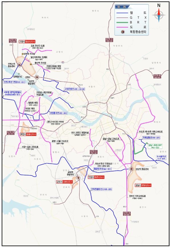 현재 광역교통시행계획, 국가철도망구축계획 등 상위 교통망 계획 및 인근 지구 광역교통 개선대책으로 포함되어 추진 중인 35개 도로‧철도 사업들은 철저한 사업관리를 통해 신도시 정비 전('35)까지 적기 준공하여 주요 교통축 교통정체 구간을 해소하고 서울 외 지역으로 통행을 분산할 계획이다.