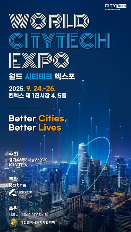 (시사미래신문) 경기주택도시공사(GH)는 9월 24일부터 26일까지 고양 킨텍스(KINTEX)에서 도시 기술의 미래를 직접 보고 체험할 수 있는 ‘2025 월드 시티테크 엑스포(World CITYTech Expo 2025)’를 개최한다고 23일 밝혔다.