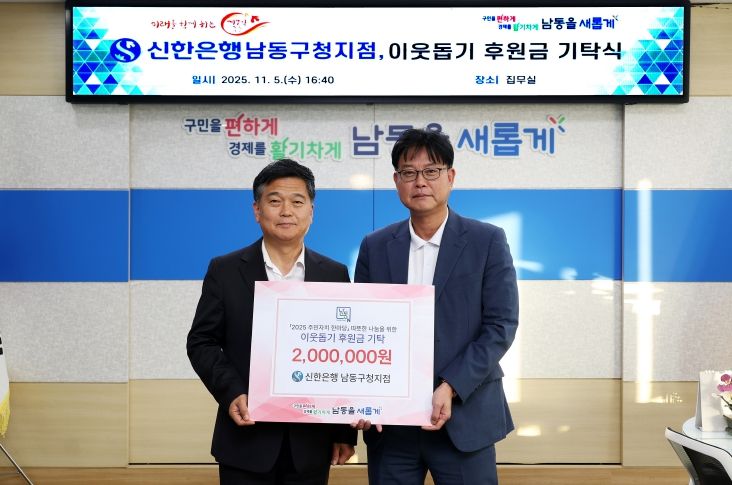 (시사미래신문) 인천시 남동구는 최근 신한은행 남동구청지점이 ‘2025 주민자치 한마당 이웃돕기 후원금’ 200만 원을 기탁했다고 10일 밝혔다.