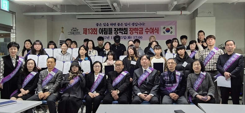 (시사미래신문) 아침뜰장학회 (회장 박영자)는 11월 25일 화요일, 안양시 공익활동지원센터 대회의실에서 제 13회 아침뜰장학회 장학금 전달식을 가졌다고 밝혔다.