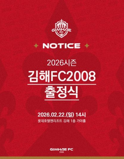 (시사미래신문) K리그2 무대에 첫 도전장을 내미는 김해FC2008(이하 김해FC)이 오는 22일 오후 2시, 롯데호텔앤리조트 김해에서 ‘2026시즌 출정식’을 개최한다.
