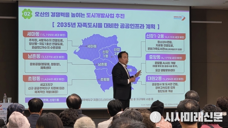 이권재 시장은 이날 세교3 공공주택지구 개발 및 운암뜰 AI시티 도시개발 구상, 세교터미널 부지 활용 방안 등 현재 검토·추진되고 있는 주요 도시 인프라 사업과 교통에 대해서도 시민들에게 자세하게 설명했다.