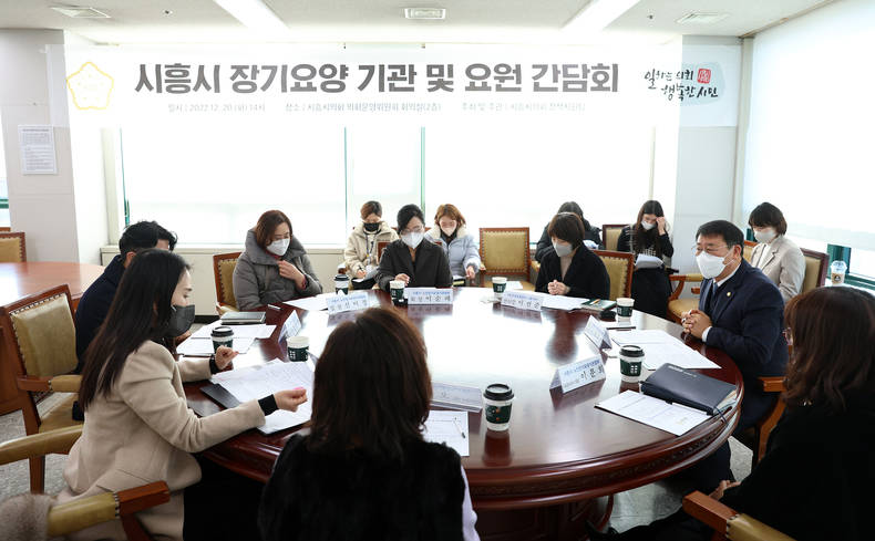 이날 간담회에는 국민건강보험공단 시흥지사, 시흥시노인장기요양기관 협회, 관계 공무원 등 10여 명이 참석해 장기요양기관 운영상 어려운 점을 허심탄회하게 나누고, 조례 제정 등 장기요양기관 종사자의 근무환경을 개선하기 위한 다양한 지원 방안에 대해 의견을 나눴다.