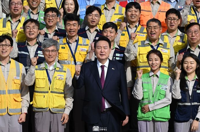 윤 대통령은 이어 “도전정신 없이 일상의 삶에 안주하는 것은 프리라이더나 다름없다. 중동에 진출해 옷가지를, 섬유 제품을 팔기 위해 동분서주했던 반세기전 도전을 통해, 조선소도 없는데 배를 수주해서 결국 수출을 해냈던 대한민국의 역사가 바로 그 도전을 통해 만들어졌다”며 “여러분들 화이팅 하십시오”라고 응원의 메시지를 전했다.
