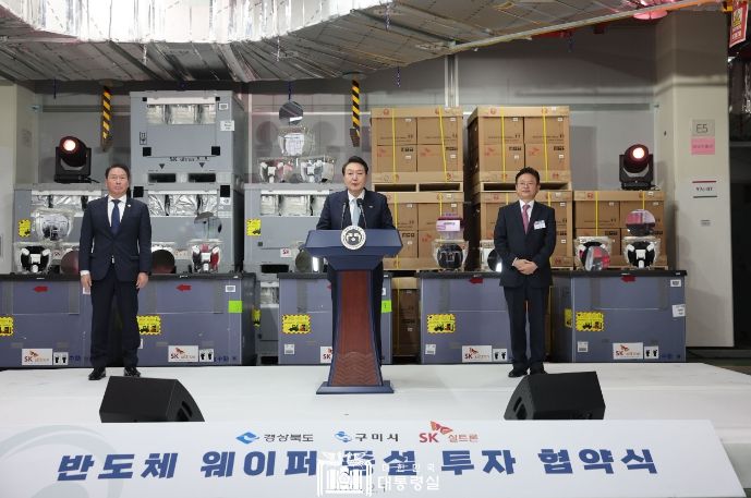 (시사미래신문) 윤석열 대통령은 2. 1일 경북 구미시 소재 SK실트론을 방문하여 투자협약식에 참석하고 반도체 및 초순수(ultra pure water) 생산시설을 시찰했다.