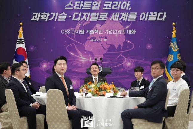 (시사미래신문) 윤석열 대통령은 2. 2일 용산 대통령실에서 'CES(국제전자제품박람회, Consumer Electronics Show) 2023' 디지털 기술혁신 기업 CEO 40여 명을 초청해 오찬 간담회를 가졌다.