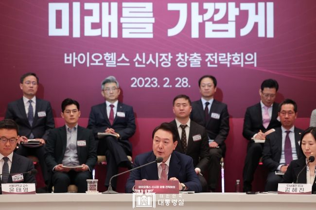 (시사미래신문) 윤석열 대통령은 2.28일 영빈관에서 '바이오헬스 신시장 창출 전략회의'를 주재하고, 바이오헬스 산업을 국가 핵심 전략산업으로 키워나가기 위해 정부가 역량을 모으고 지원해 나가겠다는 강한 의지를 밝혔다.