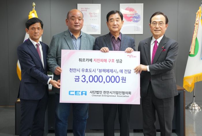 천안시 기업인협의회 회원사들이 십시일반 힘을 모은 성금은 천안시 우호도시 뷰첵메제시에 기부돼 튀르키예 정부에 전달될 예정이다.