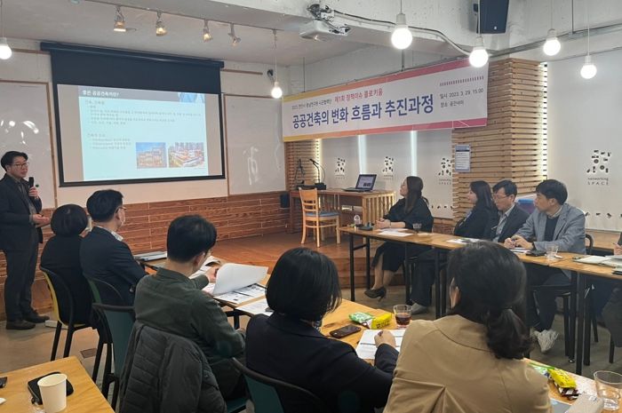 제1회 정책이슈 콜로키움은 충남연구원의 강경연 연구원이 ‘공공건축의 변화 흐름과 추진과정’이라는 주제로 ▲좋은 공공건축의 의미 ▲공공건축 조성절차 ▲공공건축 사업계획 등에 대해 발표했다.