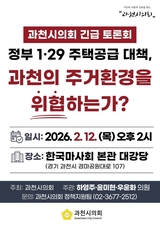 과천시의회, 정부 1·29 주택공급 대책 관련 긴급 토론회 개최