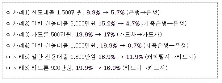 소비자의 직접적인 대출이동 외에도, 인프라 개시에 맞춰 주요 은행 등의 금리 인하 동향 역시 확인됐다. 플랫폼에 탑재하는 대환대출 상품의 금리를 인하하거나, 자사 앱을 통해 대환대출을 신청하는 소비자에 대해 금리를 추가 인하하는 등의 사례가 확인됐다*.