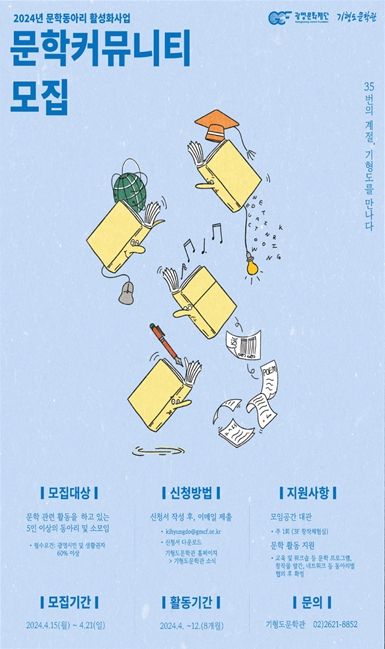 (시사미래신문) (재)광명문화재단은 2024년 문학 커뮤니티 활성화를 위하여 기형도문학관의 문학동아리를 모집한다.