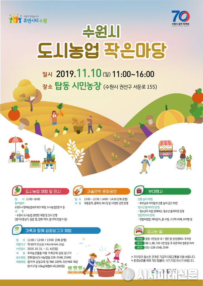 수원시농업기술센터가 10일 오전 11시부터 오후 4시까지 권선구 탑동 시민농장에서 ‘수원시 도시농업 작은마당’을 연다.