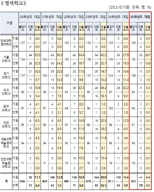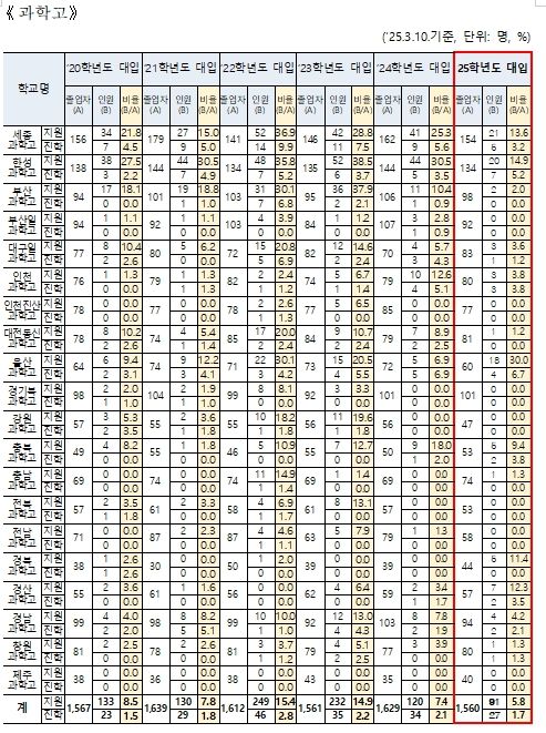 (시사미래신문) 교육부는 8월 12일, ‘2025학년도 영재학교·과학고 의·약학 계열 진학률’을 발표한다고 밝혔다.