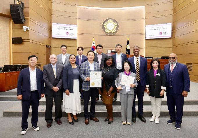 시의회를 찾은 대표단은 ▲카운티 의회 의장 에드워드 버로스, ▲부의장 크리스탈 오리아다를 비롯해 의원 5명(셰일라 아담스-스태포드, 에릭 올슨, 캘빈 호킨스)으로 구성됐다.