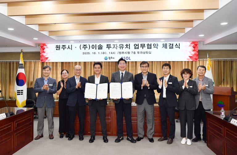 (시사미래신문) 원주시는 10월 1일 오후 2시, 시청 7층 투자상담실에서 ㈜이솔(대표 김병국)과 투자유치 협약(MOU)을 체결했다. 이번 협약은 총 505억 원 규모의 투자로, 부론일반산업단지에 소형 방사광가속기와 첨단 EUV 반도체 검사장비 연구·생산시설을 구축하는 사업이다. EUV(Extreme Ultra-Violet)는 반도체 초미세 공정(7nm 이하)에 필수적인 광원이다.
