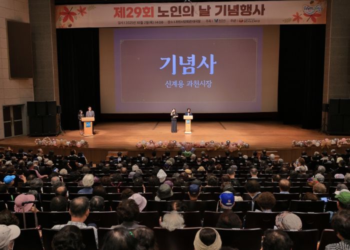 (시사미래신문) 과천시는 2일 시민회관 대극장에서 ‘제29회 노인의 날 기념식’을 열었다. 시가 주최하고 과천시노인복지관이 주관한 가운데 열린 이날 행사에는 지역 어르신 1천1백여 명이 참석했다.
