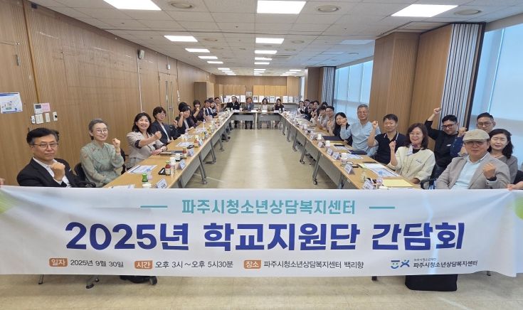 (시사미래신문) (재)파주시청소년재단 파주시청소년상담복지센터(센터장 장문희)는 9월 30일 오후 3시, 센터 내 백리향에서 관내 초·중·고 33개교 교장을 대상으로 '2025년 청소년안전망 학교지원단 간담회'를 개최했다.