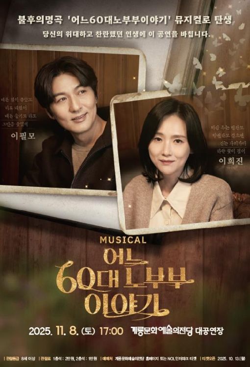 (시사미래신문) 계룡시는 오는 11월 8일 오후 5시, 계룡문화예술의전당 대공연장에서 뮤지컬 ‘어느 60대 노부부 이야기’를 공연한다.