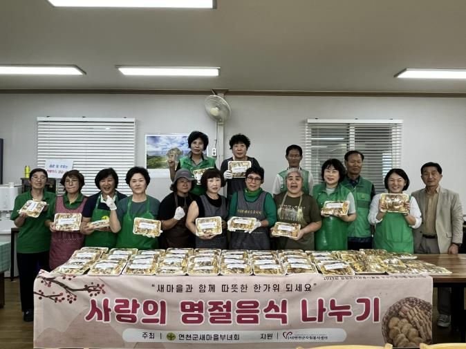 (시사미래신문) 연천군새마을부녀회는 2일 청산면 백의리 복지회관과 백학면 학마을 마을회관에서 사랑의 명절음식 나누기 활동을 진행했다.