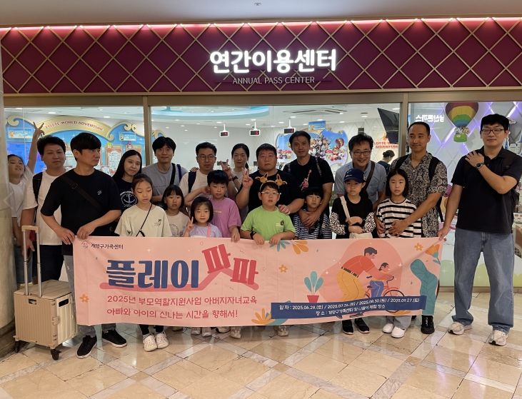 (시사미래신문) 인천 계양구가족센터는 지난 6월 28일부터 9월 27일까지 유아, 아동, 초등학생 자녀를 둔 13가정(52명)을 대상으로 아버지자녀교육 프로그램 ‘플레이파파’를 진행했다.