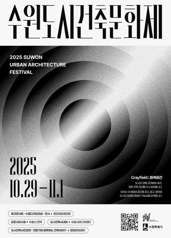 (시사미래신문) 수원특례시는 10월 29일부터 11월 1일까지 정조테마공연장, 수원시미디어센터, 팔달문화센터 등에서 ‘2025 수원도시건축문화제’를 연다.