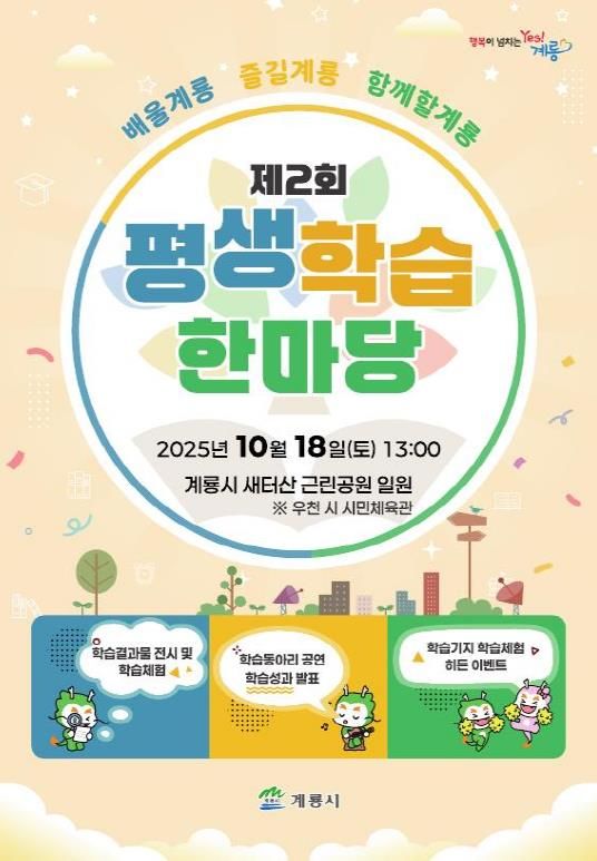 (시사미래신문) 계룡시는 오는 18일 오후 1시부터 시청 앞 새터산 근린공원에서 시민이 주도하는 배움의 축제 “2025 제2회 계룡시 평생학습 한마당”을 개최한다고 밝혔다.
