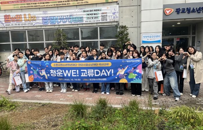 (시사미래신문) 수원시청소년청년재단 동부청소년지역센터는 천안시청소년재단과 함께 2025 수원·천안 지역 청소년운영위원회 교류활동‘청운WE! 교류DAY’를 10월 25일 광교청소년청년센터에서 성황리에 마무리했다.
