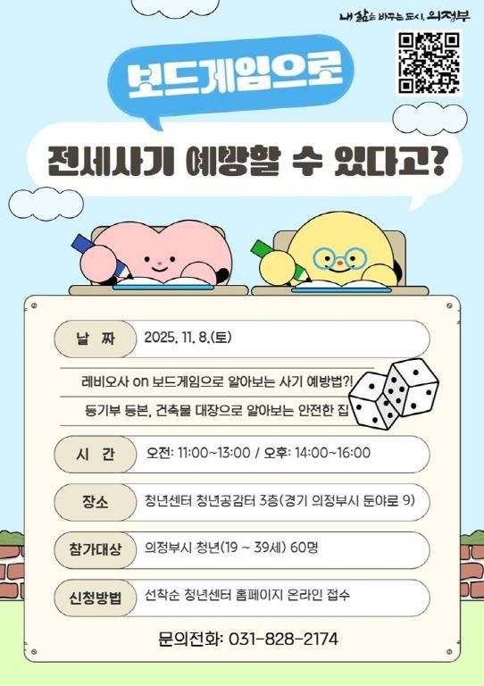 (시사미래신문) 의정부시는 11월 8일 운영 예정인 전세사기 피해 예방 교육용 보드게임 프로그램 ‘레비오사 보드ON’에 참여할 청년을 모집한다.