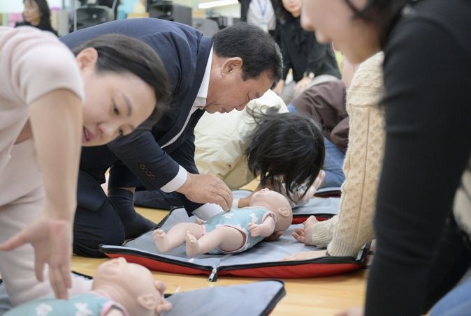 (시사미래신문) 최민호 세종특별자치시장이 21일 종촌동 육아종합지원센터에서 ‘찾아가는 현장소통’을 열고 영유아 학부모 40여 명과 함께 심폐소생술을 재숙지하고 응급대처의 중요성을 공유했다.