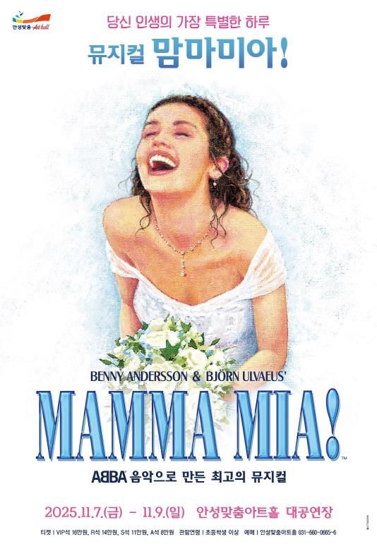 (시사미래신문) 안성맞춤아트홀은 오는 11월 7일부터 9일까지 대공연장에서 세계적인 히트 뮤지컬 '맘마미아!'를 무대에 올린다. 세대를 초월한 명곡과 유쾌한 스토리로 사랑받아온 이번 작품은 남녀노소 누구나 즐길 수 있는 최고의 힐링 뮤지컬이다.