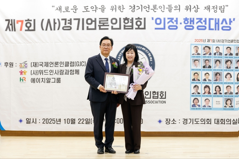 (시사미래신문) 화성특례시의회 문화복지위원회 차순임 의원(동탄1·2동)이 22일 제7회 (사)경기언론인협회 의정·행정대상 시상식에서 ‘기초의원 부문 의정대상’을 수상하는 영예를 안았다.