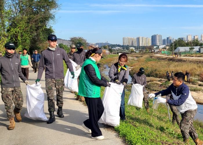 (시사미래신문) 새마을문고 양주시지부는 10월 21일 오전 8시 50분부터 약 2시간 동안 독수리병영도서관 장병들과 함께 부대 앞 샘내 일대 천변에서 ‘건강과 환경을 지키는 줍킹데이’ 행사를 성황리에 개최했다.