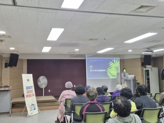 (시사미래신문) 아산시 음봉면 행정복지센터는 지난 10월 28일 음봉산동종합사회복지관 이용 어르신들 23명을 대상으로 감염병 예방 교육을 실시했다.