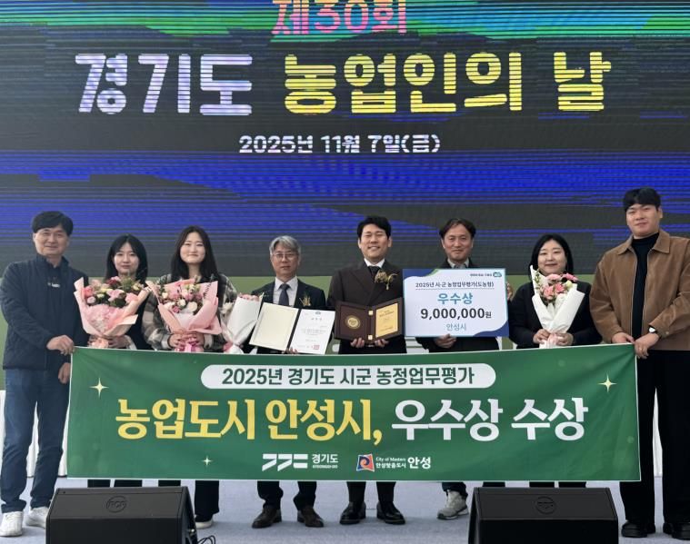 (시사미래신문) 안성시가 2025년 경기도 시·군 농정업무 평가에서 우수 기관으로 선정되어 ‘우수상’을 수상했다. 지난해 ‘장려상’을 받은데 이어 올해는 한 단계 도약한 성과를 거두며, 지역 농정 추진 역량을 다시 한번 입증했다.