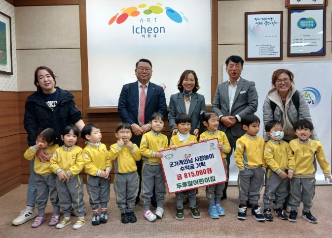 (시사미래신문) 이천시 장호원읍 두루말어린이집은 11월 11일, 어린이들과 함께 장호원읍행정복지센터에 방문해 군가족의 날 아나바다 시장놀이 행사의 수익금 815,000원을 전달했다.