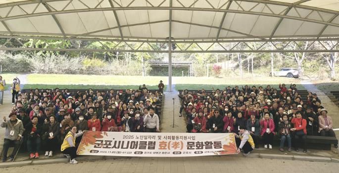 이번 문화활동은 노인일자리 및 사회활동지원사업 참여 어르신들의 여가 복지 증진과 정서적 힐링을 돕기 위해 위해 마련됐으며, 군포시 노인일자리 참여자 1,613명과 교통 및 의료지원 봉사자, 관계자 등 총 1,718명이 가을 정취를 즐겼다.