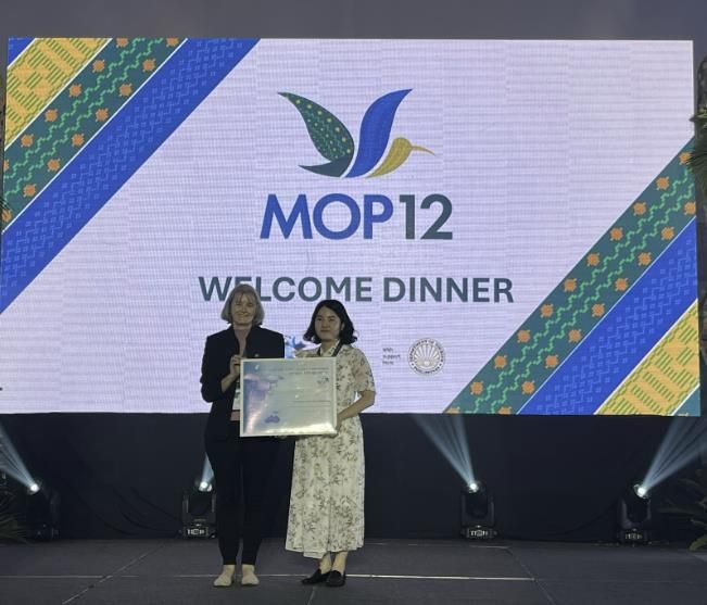 이번 총회에서는 연천군을 비롯한 미얀마, 필리핀, 태국 등 총 7개 지역이 신규 철새이동경로 네트워크 서식지로 등재됐으며, 한국에서는 연천군이 유일하게 선정돼 나렐 몽고메리 EAAFP 의장으로부터 인증서를 수여받았다.