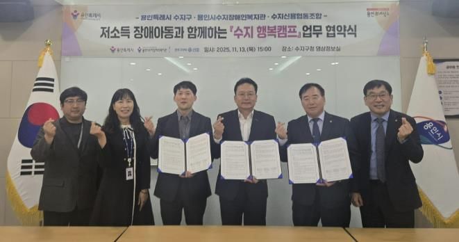 (시사미래신문) 용인특례시 수지구는 13일 용인시수지장애인복지관과 수지신용협동조합과 함께 저소득 장애아동의 복지 향상과 장애 인식 개선을 위한 ‘수지 행복캠프’ 추진 업무협약을 체결했다고 14일 밝혔다.