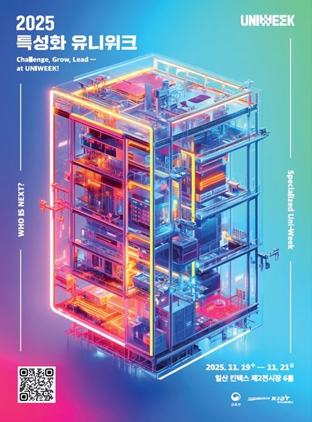 (시사미래신문) 교육부와 한국산업기술진흥원(원장 민병주)은 11월 19일부터 11월 21일까지 일산 킨텍스에서 첨단산업 특성화대학 학생들을 위한 축제인 ‘유니위크(Uni-Week)’를 개최한다. 이에 앞서 11월 18일부터 특성화대학 반도체·이차전지 분야 경진대회 결선도 시작된다.