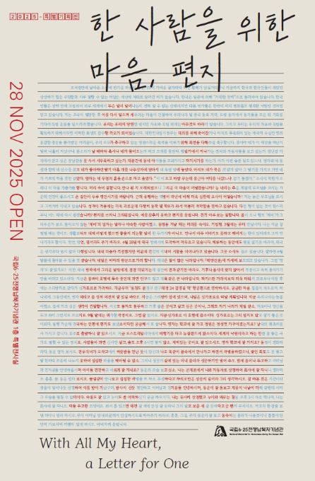 (시사미래신문) 통일부 국립6·25전쟁납북자기념관은 개관 8주년을 맞이하여 11월 28일 오후, 경기도 파주시 소재 기념관 1층 특별전시실에서 '한 사람을 위한 마음, 편지'를 주제로 특별전시 개막식을 개최한다.
