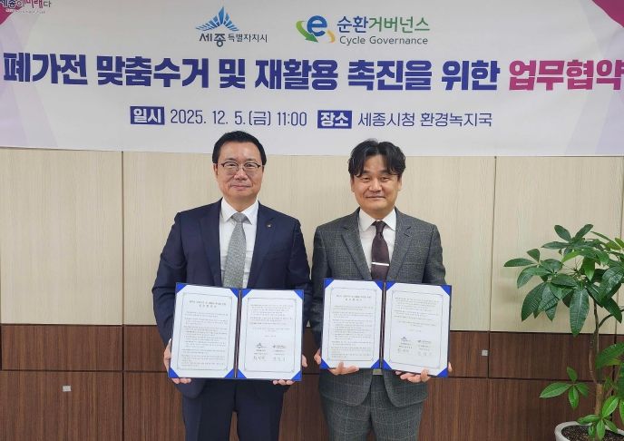 이번 협약은 지난 7월 ‘세종시 폐기물 관리조례’ 개정 완료로 내년 1월부터 세종시에서 폐가전 무상수거 제도가 본격 시행됨에 따라 마련됐다.