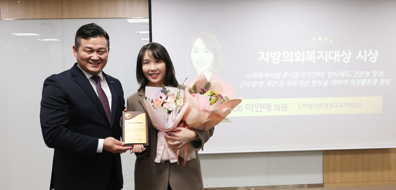 (시사미래신문) 경기도의회 여성가족평생교육위원회 이인애 의원(국민의힘, 고양2)은 9일(화), 한국사회복지사협회 주최로 경기도의회 중회의실에서 열린 ‘2025년 지방의회복지대상’ 시상식에서 ‘지방의회복지대상’을 수상했다.