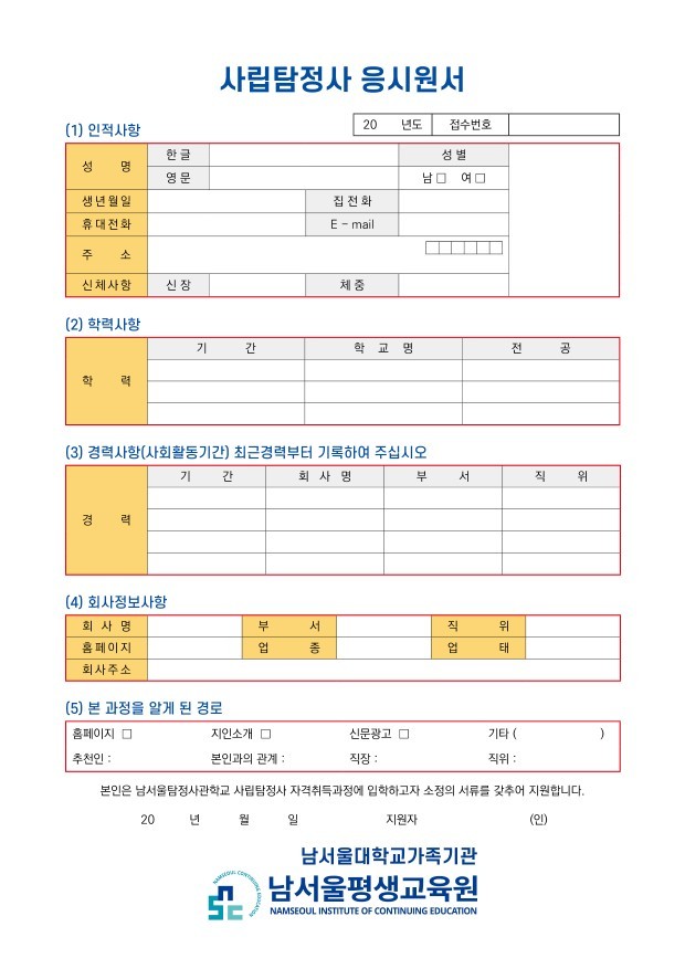 과정 수료 후, 소정의 심사를 거쳐 경찰청 등록 민간조사사(탐정사) 자격증이 발급된다.