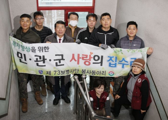 이번 집수리 봉사활동은 지난 2012년 3월 16일 구리시와 구리시 목민봉사회, 보병 제73 사단이 체결한 민·관·군 합동 ‘Amazing-House’ 사업 협약에 따라 추진된 것으로, 국가유공자를 대상으로 한 45번째 집수리 봉사다.