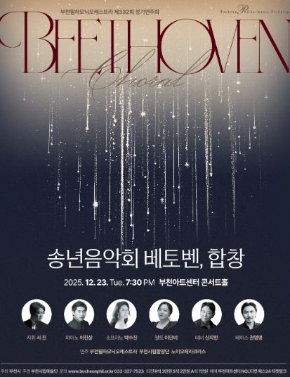 (시사미래신문) 부천필하모닉오케스트라가 오는 12월 23일 오후 7시 30분 부천아트센터 콘서트홀에서 제332회 정기연주회 송년음악회 ‘베토벤, 합창’을 개최한다. 이번 송년음악회는 부천필이 2015년부터 매년 선보여온 프로그램인 베토벤 '교향곡 제9번 ‘합창’'과 함께, 모차르트 '피아노 협주곡 제12번'이 연주된다. 공연에는 지휘자 서진과 부천필이 무대에 오르며, 소프라노 박수진, 메조소프라노 이단비, 테너 신지한, 베이스 권영명이 협연하며 부천시립합창단과 노이오페라코러스가 연주로 함께 무대를 꾸민다.