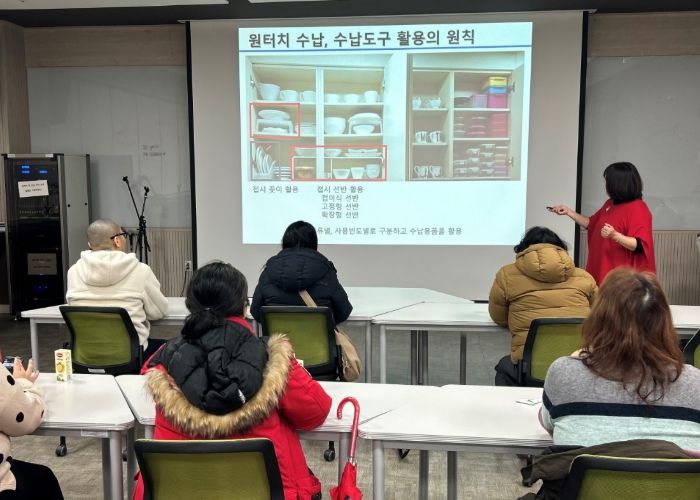 정리·수납이 특히 필요한 6가구를 우선 선정해 1차 이론 교육을 진행했으며, 이후 희망 가구 2곳을 대상으로는 주방 정리를 중심으로 한 현장 컨설팅과 실습 교육이 이어졌다.
